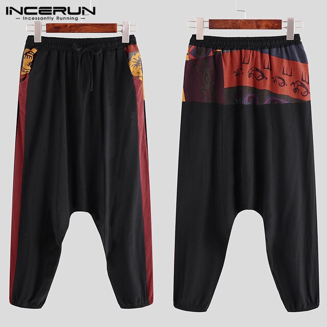 Model Number: Men Harem Pants Print Patchwork Trousers